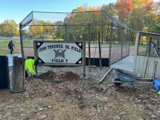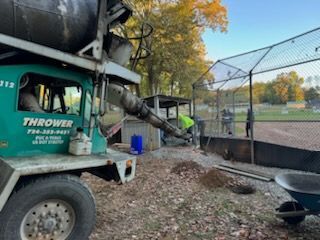 These photos show our truck delivering donated concrete for the dug outs on the John W Thrower Sr Memorial Field.